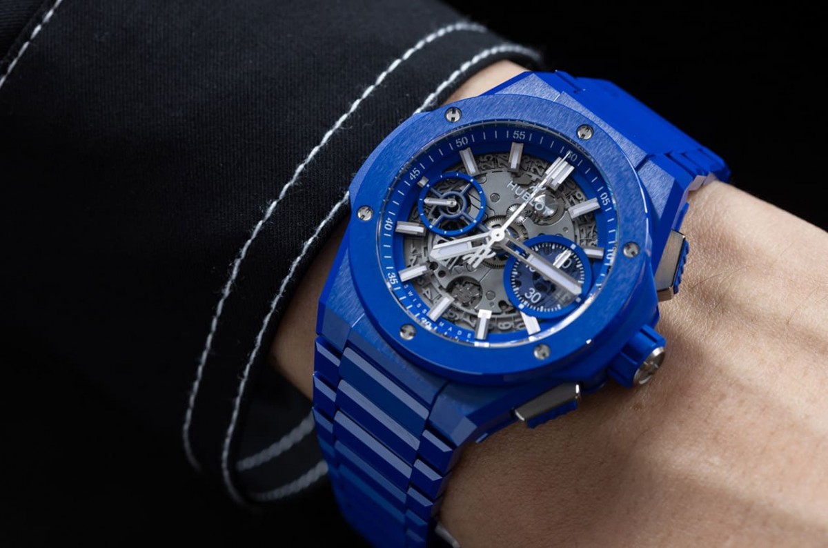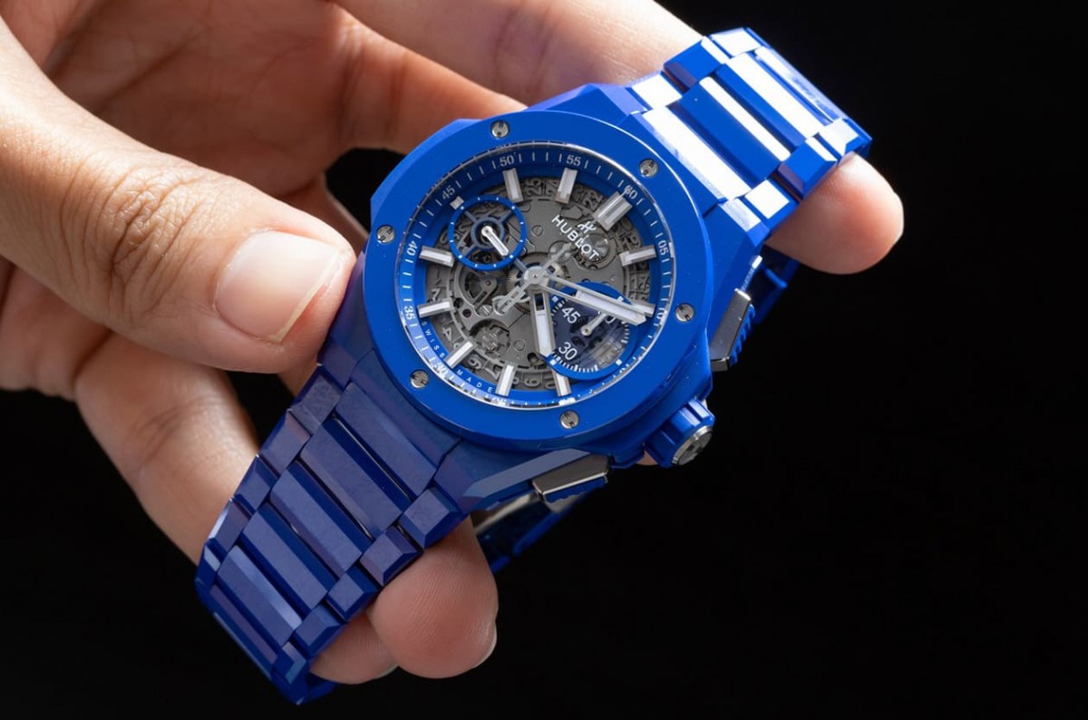 C罗佩戴的Big Bang Integrated透明彩虹圈数量稀少、价格也是顶尖,世上能拥有的幸运儿毕竟还是少数,不过想要感受宇舶链带腕表魅力还是有很多选择。像是Big Bang Integrated链带计时码表就是近年深受市场欢迎的热门作品,这款表在刚出道时就已经推出过陶瓷材质的款式,其后宇舶也持续挹注更多彩色陶瓷,赋予腕表明艳多彩的视觉张力。以Big Bang Integrated陶瓷链带计时码表靛蓝款为例,腕表的表壳与链带皆以宝蓝色陶瓷制成,零件表面经过拉丝处理、边角则经过倒角拋光,除了要调配出异色陶瓷仰赖品牌的独家配分,能将高硬度的陶瓷制作出结构复杂、切面又繁复的大爆炸腕表外观,在在突显出品牌制作技术的成熟。
