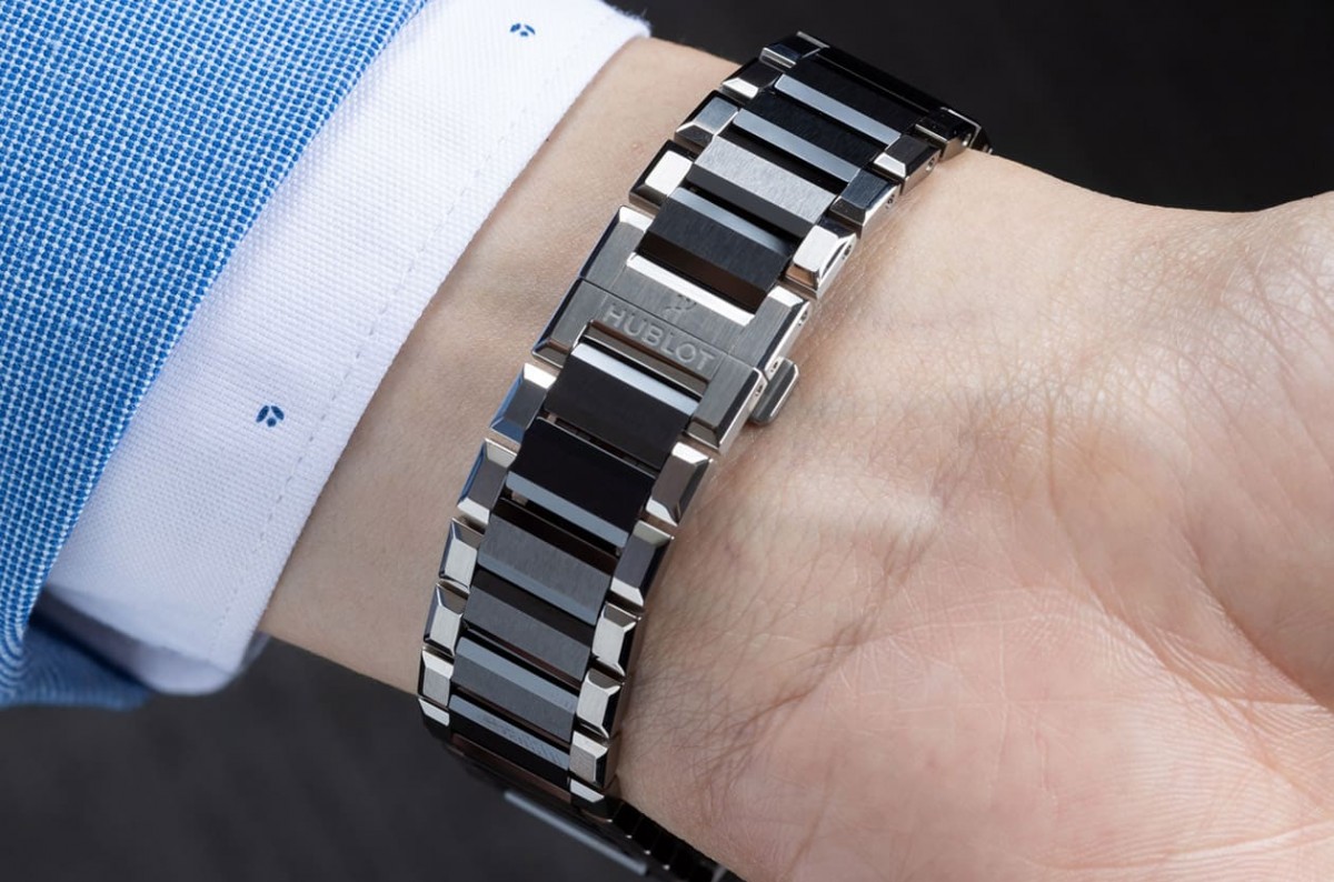 宇舶的链带表还有个与众不同的特色在于,品牌尝试将两种截然不同的材质组合成双色的新「视」界,如Big Bang Integrated钛金陶瓷链带腕表便是钛金属与黑色陶瓷的集合,品牌用钛金属制作表壳、黑色陶瓷制作表圈,而顺着表壳延伸到一体式链带的部分竟也应用双材质组成,包括中央錬节是黑色陶瓷材质、两侧錬节则是钛金属材质,两种材质都秉承Integrated链带造型设定,且彼此紧密连接,双材质的视觉与触觉效果不尽相同,佩戴在手上比起运用单一材质的设计也会有全新的体验,也更引人好奇想要靠近赏玩宇舶独家链带的造型、工艺,以及光泽变化。问世时间不长的宇舶链带腕表,正持续发扬品牌融合的艺术精神,带给市场一次又一次意想不到的惊喜。