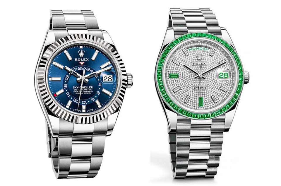 ▲左为费德勒佩戴的蓝面Sky-Dweller、右为Mirka Federer佩戴的Day-Date 40(228396TEM)。