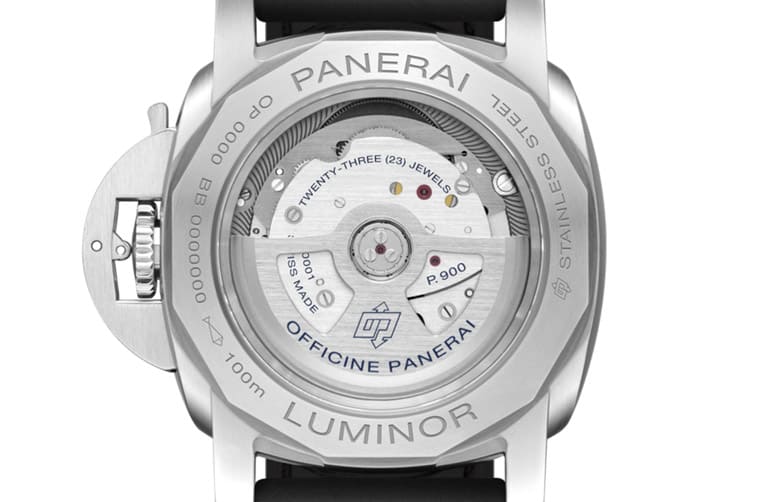 ▲此次沛纳海推出的五款Luna Rossa特别版中,PAM01404是唯一配置透明底盖的作品。