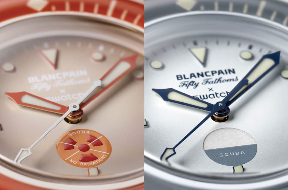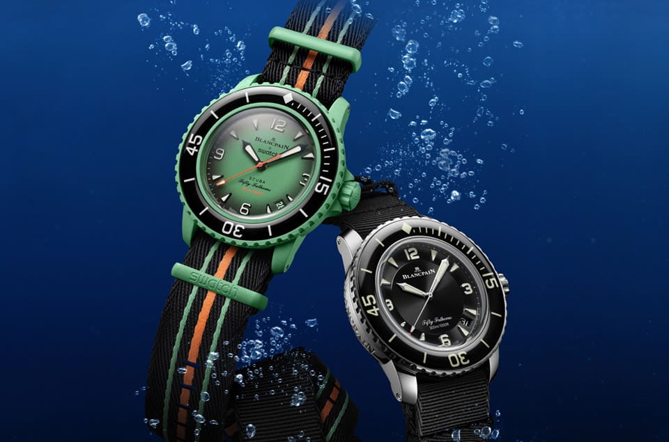 ▲SWATCH和宝珀合作,把Scuba潜水表和五十噚系列(图右)进行合体,创造出史上最平价的宝珀联名表。