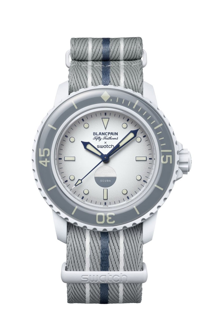 原来这次的SWATCH x BLANCPAIN Bioceramic Scuba Fifty Fathoms手表分别以地球五大洋为灵感,包括Arctic Ocean(北冰洋)、Pacific Ocean(太平洋)、Atlantic Ocean(大西洋)、Indian Ocean(印度洋)以及Antarctic Ocean(南冰洋)。如同MoonSwatch,SWATCH x BLANCPAIN联名表的表壳也是用前者独步表坛的Bioceramic生物陶瓷制成,这种材质由2/3陶瓷粉末和1/3蓖麻籽油所萃取出的Biosourced生物源构成,大致而言就是比传统塑料耐用、又不像一般陶瓷硬度高易碎,还和陶瓷一样可以调配出不同顏色,是用来制作表壳的理想选择。