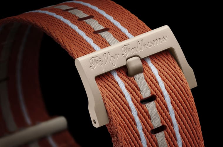 ▲Bioceramic Scuba Fifty Fathoms手表採用的NATO表带都以回收渔网制成,多色设计增添手表视觉魅力。