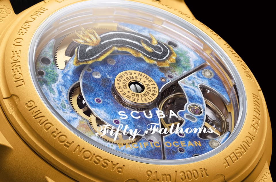 ▲Pacific Ocean太平洋款表背,自动盘印有裸鳃类动物Chromodoris Kuiteri图案。