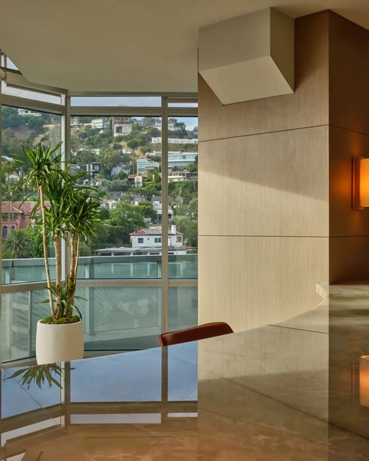 这间位在日落大道豪华顶楼公寓的AP House由着名的Romanek Design Studio操刀设计,其从爱彼发跡的瑞士Le Brassus村庄取材,室内空间中的元素如木材、天鹅绒、马海毛、彩色玻璃和黄铜等,都有着诠释Le Brassus村庄自然景致的用意,而且Romanek Design Studio也把爱彼大力支持人文艺术、尤其是音乐的品牌特色融入到整体装潢中,因此走进这间AP House会发现史坦威钢琴、DJ台、黑胶唱片、知名音乐家拥有的乐器,还有一些艺术品等等,精心策划的摆设,替空间营造了舒适且知性的气息,让人置身其中彷彿身心灵都获得了陶冶般感到格外享受。