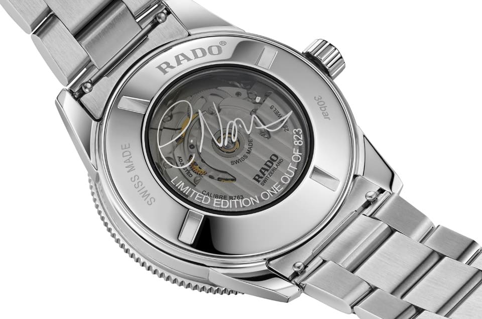 从面盘12点方向设有的紫色圆圈与灰色可摆动锚型标志可知手表乃是搭载自动机芯,手表内部的R763机芯蕴含Nivachron™摆轮游丝,对于提升手表的抗磁性能很有帮助,而且它的动力储存也达到80小时水准,实用性不在话下。表背透明底盖顏色带点黑色半透明效果,底盖上印有银色的Cameron Norrie签名,底盖下缘则刻有”LIMITED EDITION, ONE OUT OF 823”字样,你可能会好奇823只的限量数是怎麼订出来的?其实这是要用来呼应Cameron Norrie的出生日期(1995年8月23日出生),透过不同层面展现出手表的独特意义,无论是不是这位英国网球明星的球迷,能入手这款细节独树一帜的作品应该都能感到心满意足。