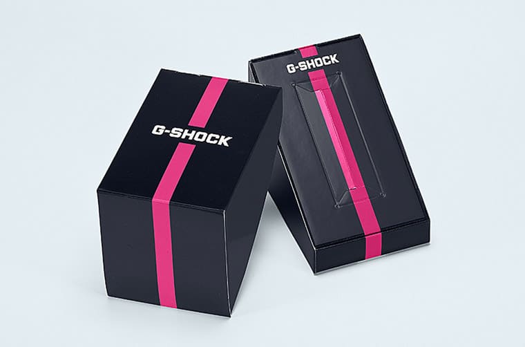 ▲G-SHOCK为了这组粉红丝带对表设计专属表盒包装。
