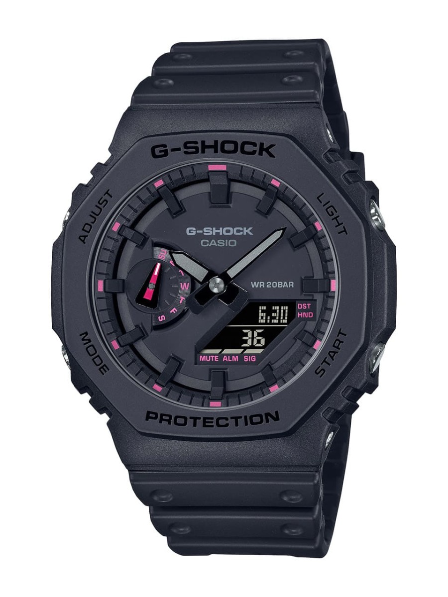 ▲GA-2100P-1A採用全黑设计,并点缀桃红色细节。