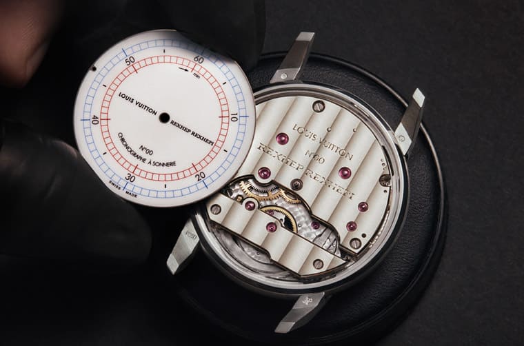 LVRR-01 Chronographe à Sonnerie採用经过重新设计的路易威登Tambour表壳,并由AKRILVIA团队与其创办人Rexhep Rexhepi从零开始打造替手表打造出全新的手动上链机芯。