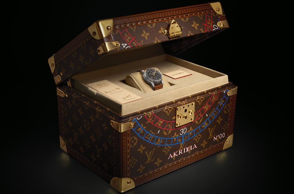 ▲路易威登替手表打造专属硬箱表盒,Monogram帆布外观上还有经过手绘的装饰与AKRILVIA标志。