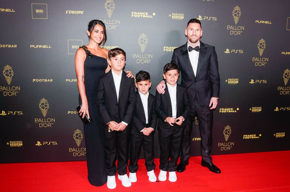 ▲梅西偕家人共同出席2023年第67届的足球金球奖颁奖典礼。