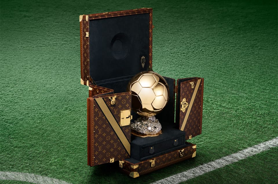 2023年的金球奖有个新惊喜在于《法国足球》与LOUIS VUITTON路易威登、Amaury集团旗下的广告代理公司Amaury Media合作,由LV打造装载金球奖奖杯的硬箱,供获奖者收藏这项难能可贵的荣耀。LV替金奖球打造的奖杯硬箱外观是经典的Monogram帆布,同时也有品牌硬箱常见的Lozine皮革、黄铜护角、扣环与锁头等元素,硬箱内部为黑色超细纤维,避免取放时不小心在奖杯表面造成刮伤,同时这款硬箱还有两个特色包括箱盖内侧绣有Ballon d'Or标志、外观面板上镶有两道金色饰条组成的”V”字,代表着「胜利 」和”Vuitton”双重意义。