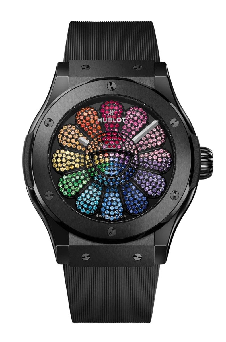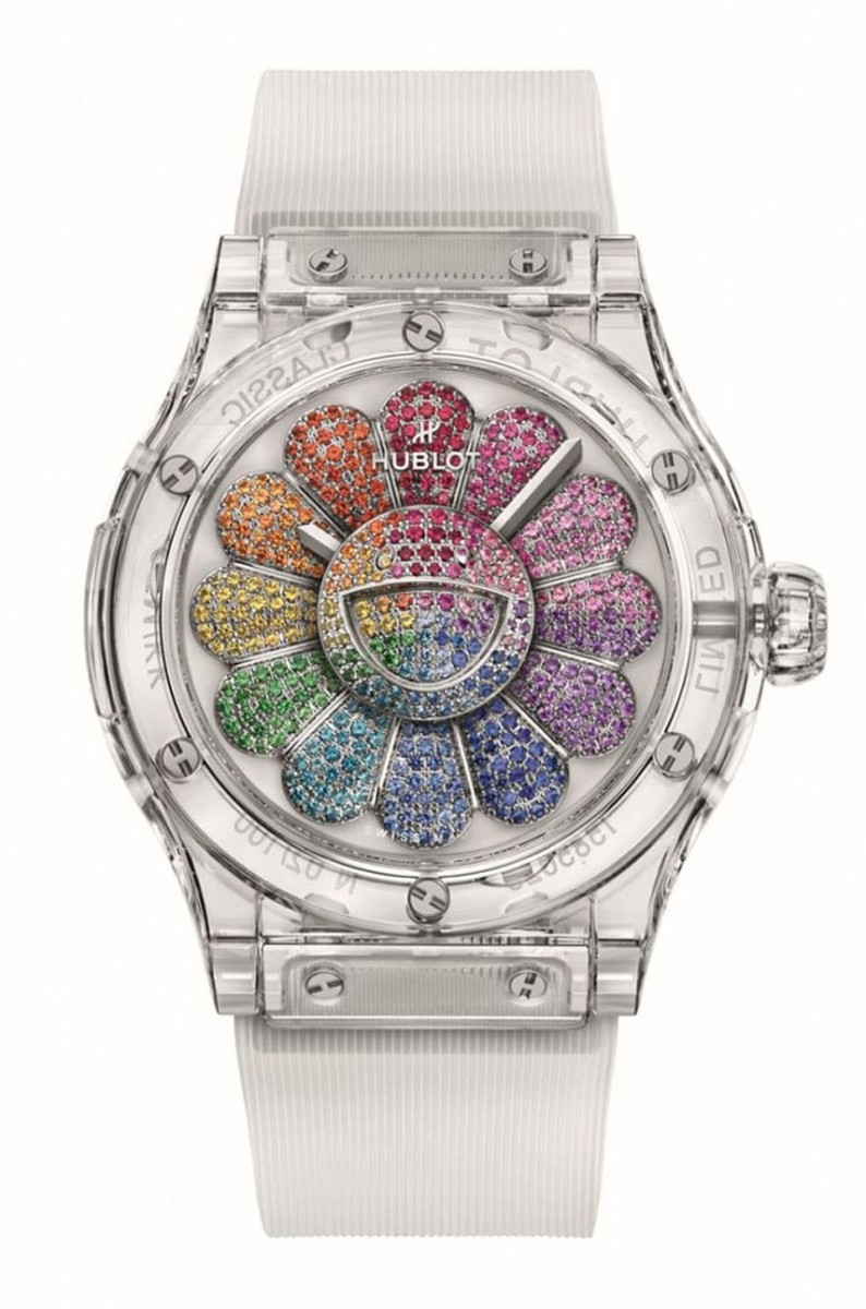 HUBLOT宇舶近年陆续与不同领域的杰出人物合作开发联名表,其中在艺术界领域最令人印象深刻(特别是身在亚洲的我们)的例子大概要属他们和日本潮流艺术大师村上隆共创的手表作品,还记得2021年乍见Classic Fusion Takashi Murakami All Black经典融合系列村上隆联名表时,大家都被手表蕴含的独特造型与鲜明的艺术家风格所吸引,当时手表限量限量200只,开卖没多久就宣告完售;经过两年多后的现在,宇舶x村上隆的联名表已经演进到三代,而且和2021年类似的是,2023年有望复制当年的节奏,先在年初发表一款,紧接在年末追加另一款村上隆联名表。