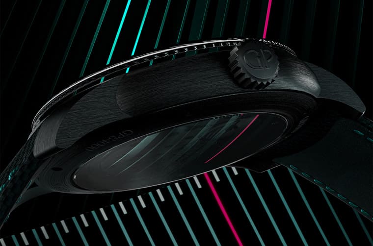 DLC钛金属材质/GP08400-2164自动上链机芯/时、分显示/蓝宝石水晶镜面、透明底盖/防水30米/表径45mm/限量250只