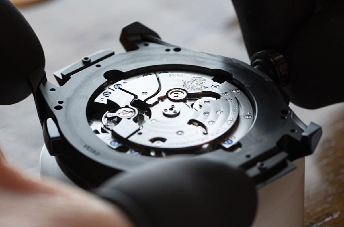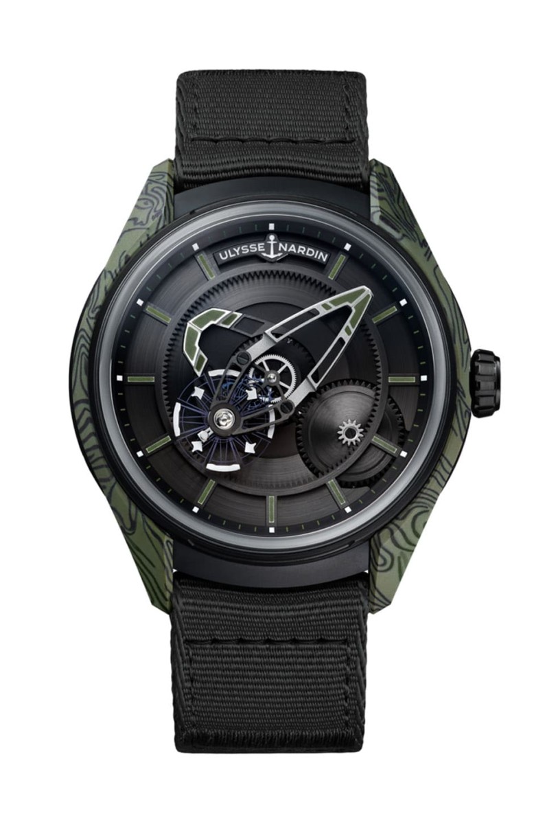 DLC钛金属、黑色碳纤维与绿色环氧树脂材质/UN-230自动上链机芯/时、分显示/卡罗素装置/蓝宝石水晶镜面/防水50米/表径43mm/参考价:NT$ 1,031,000