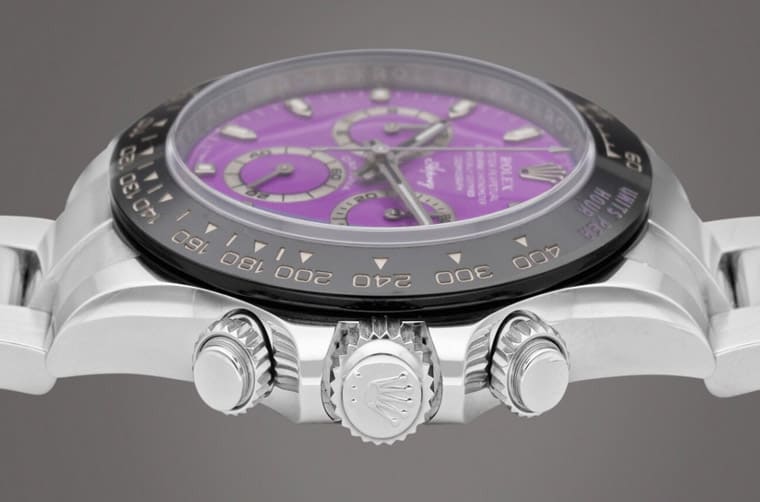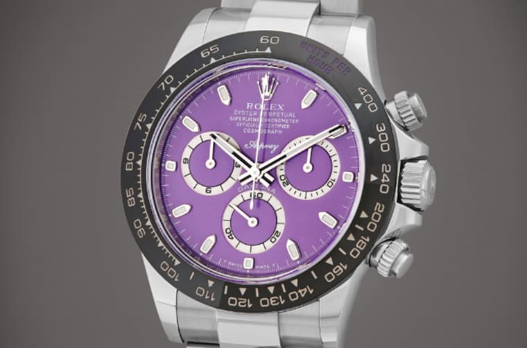 Sotheby’s苏富比拍卖行最近举行的Fine Watches线上拍卖又出现一个吸睛大物,那是一款劳力士绝版的Daytona 116500LN,你可能会觉得不过就是一款行情被炒得很高的计时码表,它会出现在拍卖会似乎也没什麼好讶异的,的确是这样⋯⋯但如果只是一只普通的116500LN,我们也不会特别想要介绍给大家,这款Daytona特别的地方在于它的面盘顏色既不是白色,也不是黑色,而是紫色!这就稀奇了吧,劳力士什麼时候出了紫色面盘的116500LN呢?