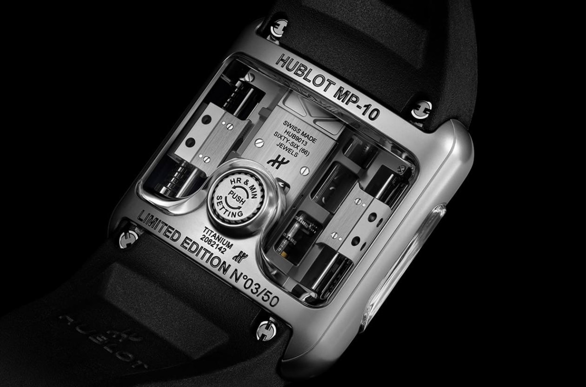 制作难度高且制作时间又相对长的MP-10双垂直上链陀飞轮首度登场仅限量50只,手表的限量编号在表背下缘的钛金属零件上能一览无遗,而相信这只是手表一鸣惊人的第一步,往后同款表绝对还会有更多创意与变化准备让人继续惊艳。