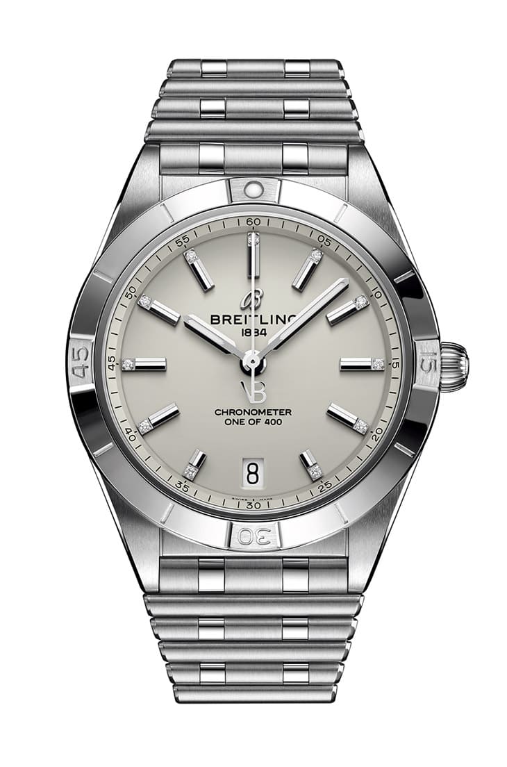 不锈钢材质/B10自动上链机芯/时、分、秒、日期显示/时标镶实验室培育钻石/蓝宝石水晶镜面/防水100米/表径36mm/限量400只/参考价:NT$ 170,000