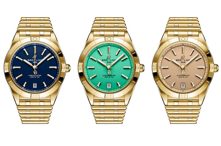 18K黄金材质/B10自动上链机芯/时、分、秒、日期显示/蓝宝石水晶镜面/防水100米/表径36mm/各限量100只/参考价:NT$ 882,000