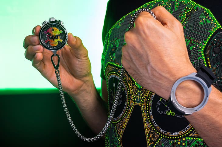 ▲炸弹表能够转换手表/怀表形式的Bolt-68 Heritage近期以数位时代为主题,延伸出数位骷髏限量表。