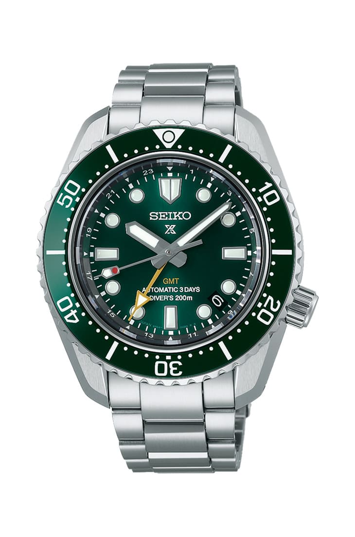 Prospex推荐型号如SPB381,这款表是系列中第一只具备两地时间功能的机械潜水表,它的不锈钢表壳作工细致,搭配陶瓷表圈耐磨、抗刮,而且还拥有实用的复杂功能以及多达72小时的动力储存,至于手表表圈和面盘的绿色调和潜水表界中的王者有异曲同工之妙,也因此更能获得表迷注意。