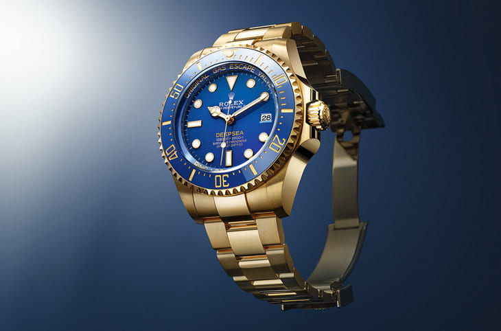 劳力士防水性能最强的系列Deepsea也加入水鬼行列,新增加黄金款式,搭配蓝色陶瓷表圈与蓝面,成为性能强化版的黄金蓝面鬼王。此次的黄金Deepsea採用蓝色陶瓷制作压力环,这是劳力士新尝试的零件组合,至于手表的排氦阀与底盖则是以RLX钛金属,确保手表能在强悍防水系能、保护性与舒适性之间取得平衡。而如果以手表的3900米防水能力而言,放眼表坛它应该也是防水性最突出的贵金属手表之一了。
