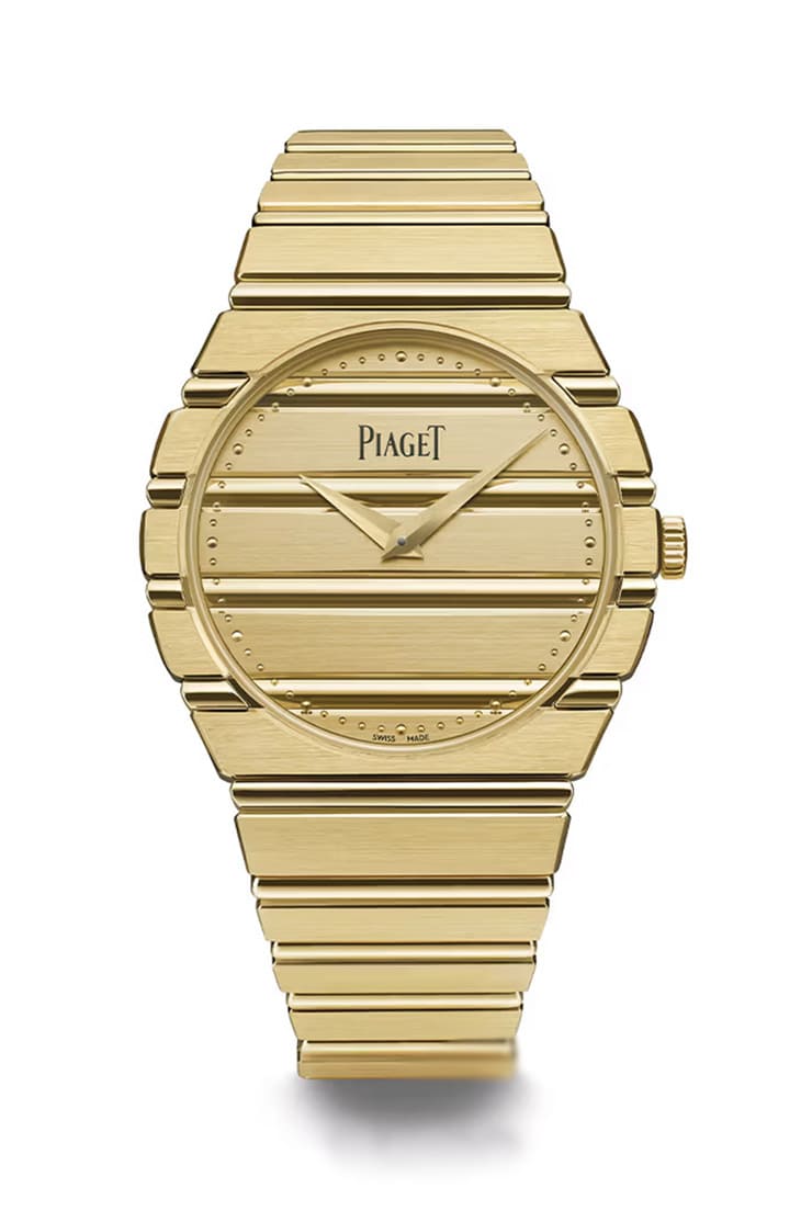 来到2024年,虽然Polo系列还是品牌不可或缺的运动休閒风格主力作品,但是现今的Polo手表和早期相比,在设计上明显产生颇为明显的变化。于是伯爵趁着2024年品牌创立150周年的时机,以1979年推出的Polo为原型,打造出现代复刻版Polo 79手表。第一眼看到Polo 79,很快就能勾起大家心中对这系列过往历史的回忆,手表明明只是一款具备基本显时功能的作品,但是它从链带蔓延到表圈、面盘的水平饰纹设计实在太抢眼且深植人心,将较之下现代的Polo系列即使强调延续水平饰纹的传统,但反而显得含蓄许多,正是那种大喇喇、粗獷的条纹设计让Polo 79手表显得与众不同,加上品牌是採用耀眼的黄金制作,使其第一眼就能吸引大众的目光。