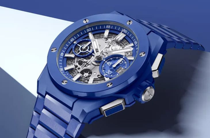 ▲细看会发现布鲁克林贝克汉这次戴的是宇舶的Big Bang Integrated蓝色陶瓷计时码表,从表壳到链带都用色彩鲜艳的陶瓷制成。