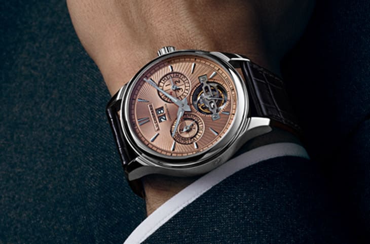 面盘可看出萧邦为制作这只高复杂手表融入的巧思,面盘集结日期、星期、月份、陀飞轮、日夜显示等诸多资讯,萧邦将这些资讯以视觉平衡的美感将其均匀分布在面盘的四周,佩戴者能获得一目了然的视读性。白金材质的表壳搭配典雅的鮭鱼面,表面饰有手工纽索纹饰,小表盘部分则改用不同的修饰手法,替整体设计带出视觉层次感。手表内部搭载L.U.C 02.15-L机芯,零件高度讲究手工润饰,其中螺钉经过拋光处理,表桥呈倒角并饰以垂直日内瓦波纹,宝石则镶嵌在黄金套筒内,这些零件的细腻度,确保手表拥有能通过日内瓦印记的优异水准。