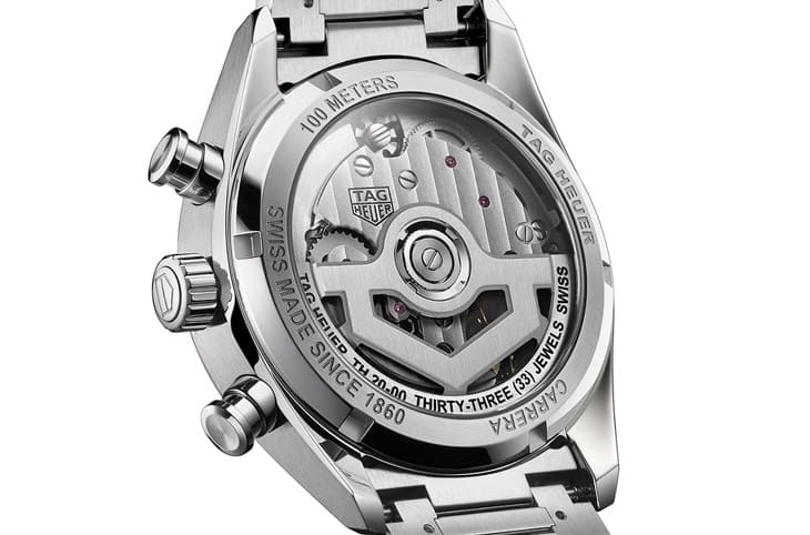 至于表款这次改为不锈钢链带这点也与2023年的款式配置皮革表带有所不同,皮革表带往往让人感受较为典雅、复古的风格,至于金属链带则是更显阳光、豪迈的运动个性,在今日的市场上属于大行其道的人气元素,与改为熊猫面的Carrera计时码表一拍即合,无形中也加深表迷对这款表的喜爱度。全新Carrera计时码表依旧搭载犹如Heuer 02机芯强化版的TH20-00机芯,从其镂空自动盘改为呼应品牌Logo的盾牌造型可知其品质与性能更加可靠,除了保有单一发条盒输出80小时动能之外,机芯的扎实品质从泰格豪雅大方提供腕表5年保固可见一斑。