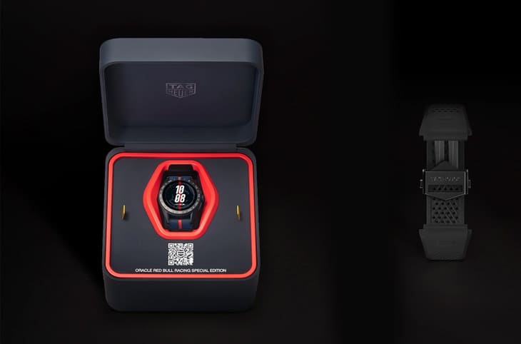 TAG HEUER泰格豪雅持续支持F1近年的王者——甲骨文红牛车队,双方从2016年就展开合作,所以在该车队的赛车涂装以及车手的赛车服上,总是能看到泰格豪雅的品牌标志;除此之外,泰格豪雅过去几年偶尔也会推出灵感来自甲骨文红牛车队的联名表,最近双方又有新作问世,那是一款Connected Calibre E4 45MM x Oracle Red Bull Racing Edition,以智能表之姿再度联手出击。