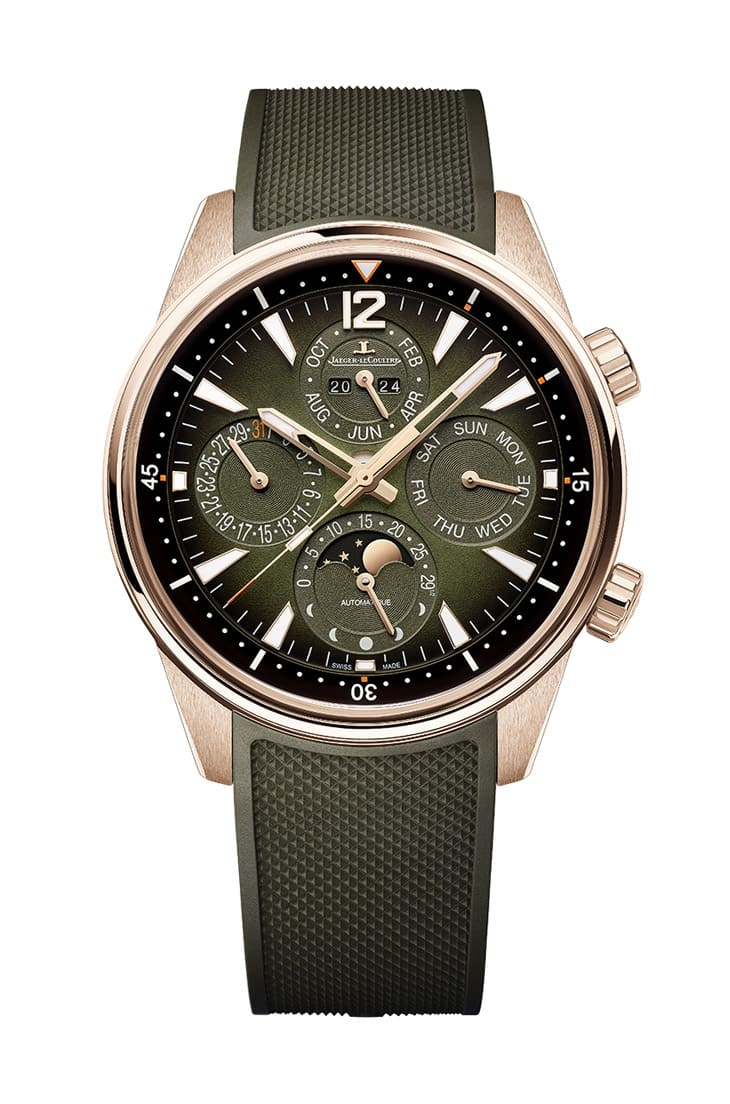 腕表以玫瑰金制作表壳,位于面盘6点钟方向的月相显示在两个半球上的设计十分吸睛,尤其其逆跳指针以高精准度显示南半球的月相,其能在0.05秒内跳返初始位置。积家替手表配置两款表带,分别是绿色橡胶表带与黑色鱷鱼皮表带,展现同中求异风格。腕表参考价为NT$ 1,670,000。