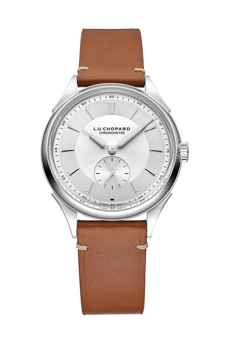 萧邦最初于2005年时创作出L.U.C Qualité Fleurier腕表,功能以实用取胜,设计简洁俐落,同时腕表亦通过走时精准度测试,具体而微展示萧邦表厂传承百年的工艺血统。2024年新登场的L.U.C Qualité Fleurier腕表,最明显的改变在于萧邦第一次採用Lucent Steel™精钢制作这款高级小三针腕表,延续2023年起品牌致力将这种成份至少含有80%再生材质全面推广到旗下精钢腕表的策略。改以品牌独家精钢制作的L.U.C Qualité Fleurier腕表外型特色不变,包括修长的焊接表耳、适中又纤薄的表壳尺寸(表径39mm、厚度8.92mm)等,搭配萧邦替腕表搭配的棕色小牛皮表带与米色缝线,将绅士的翩翩风度诠释到位。腕表面盘格局虽为素雅的小三针,但是萧邦採取传统风格的分区式面盘有效地强化整体的视觉特色,品牌巧妙用缎面太阳纹、环形缎面修饰以及蜗纹依序装点面盘中央、时标环以及6点方向的小秒盘,如此一来功能、配色单纯的镀银面盘因为装饰工艺的点缀,使其显得层次强烈,搭配涂覆夜光涂层的针筒型指针与时标上的夜光圆点,让人不受环境明暗影响阅时效果。