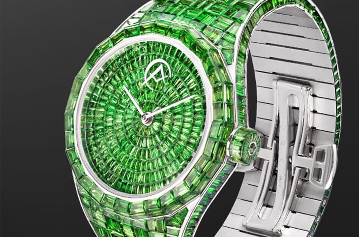 ▲Hue宝石珠宝表表壳、链带等处整只表镶上945颗宝石,将手表与珠宝工艺巧妙结合。