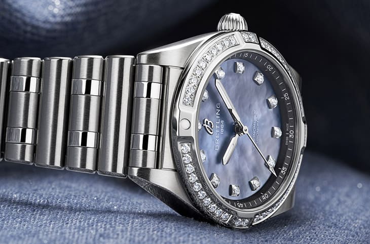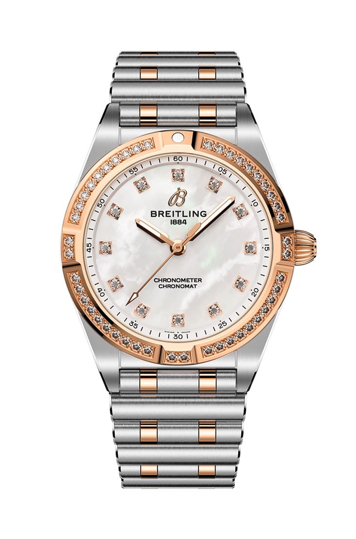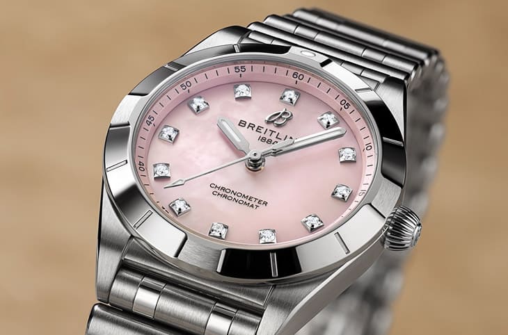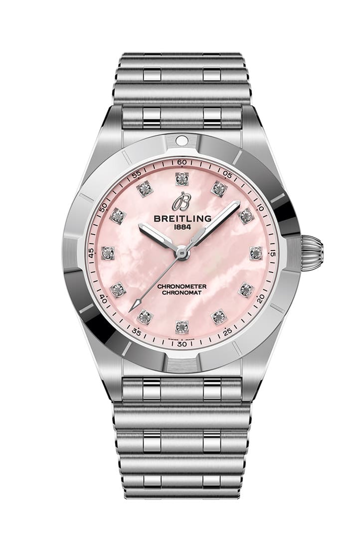 Chronomat 28三针表结合纤薄设计与优雅,它的灵感源自品牌1980年代的经典作品,如今经过现代设计崭新出发。值得一提的是,每款表都饰有能永续、可溯源的实验室培育钻石点缀。全新Chronomat 28三针表依据材质、面盘与钻石镶嵌范围可以区分为三种款式,包括蓝色或粉色珍珠母贝面盘搭配实验室培育钻石时标、不锈钢黑色珍珠母贝面盘搭配实验室培育钻石镶嵌表圈和时标,以及不锈钢和18K玫瑰金双色表壳、白色珍珠母贝面盘同样辅以实验室培育钻石镶嵌表圈和时标。