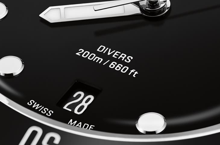 ▲Divers Date改成陶瓷表圈,面盘时标也做出切面,近看的质感因而更优化。