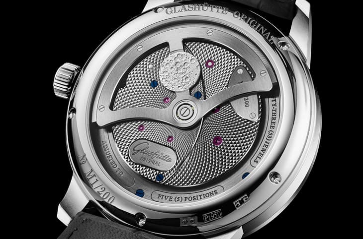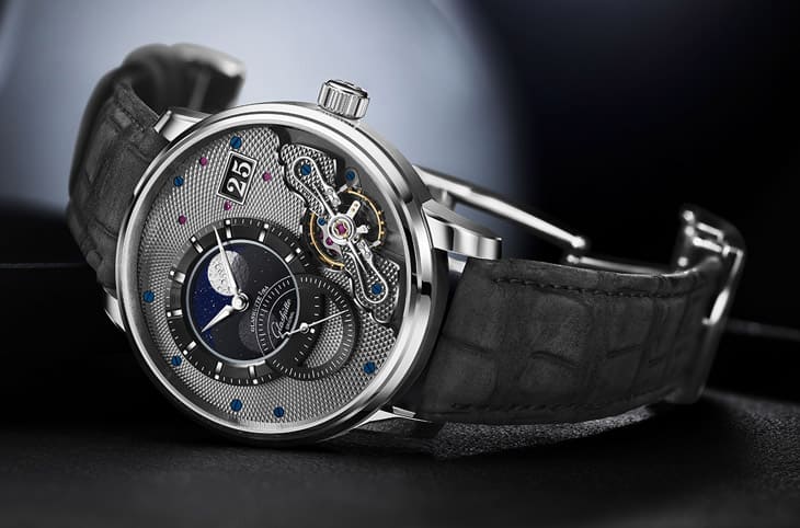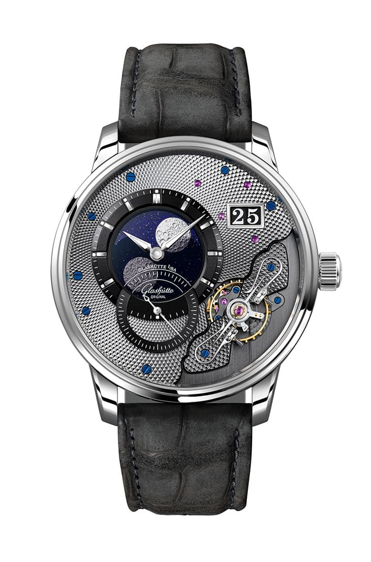 ▲格拉苏蒂原创首度将倒置机芯与月相显示融合,并以高贵的铂金材质打造。