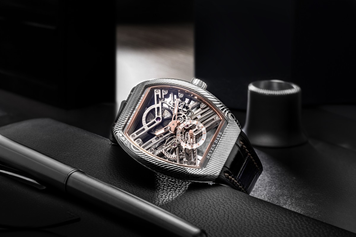 以强烈的独立精神、擅长以新颖材质和 设计挑战极限而闻名的高级钟表代表Franck Muller与新加坡先施名品钟SHH推出全球限量 28只的腕表。这款以拥有层次分明花纹的大马士革钢作为腕表的核心材质,融合不同合金钢材,并在机芯展现出惊艳的镂空设计,打造传统界限的顶级腕表。