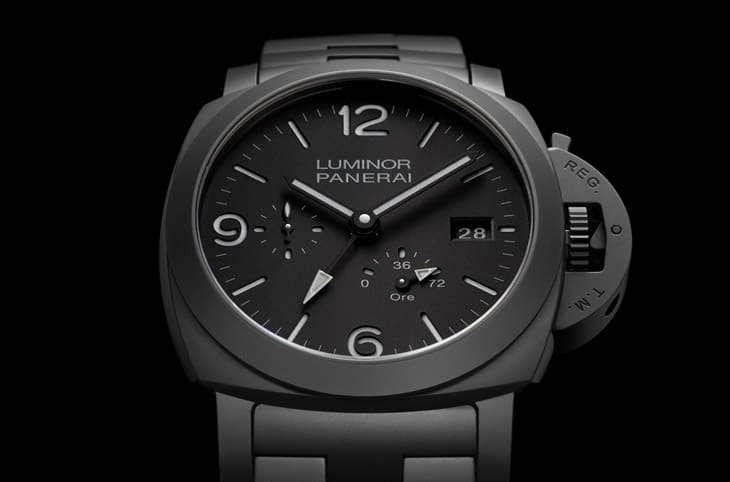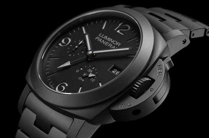 ▲Luminor系列新作PAM01674除了以黑色陶瓷制作表壳,包括链带也是黑色陶瓷打造,形塑一股豪放坚毅的特质。