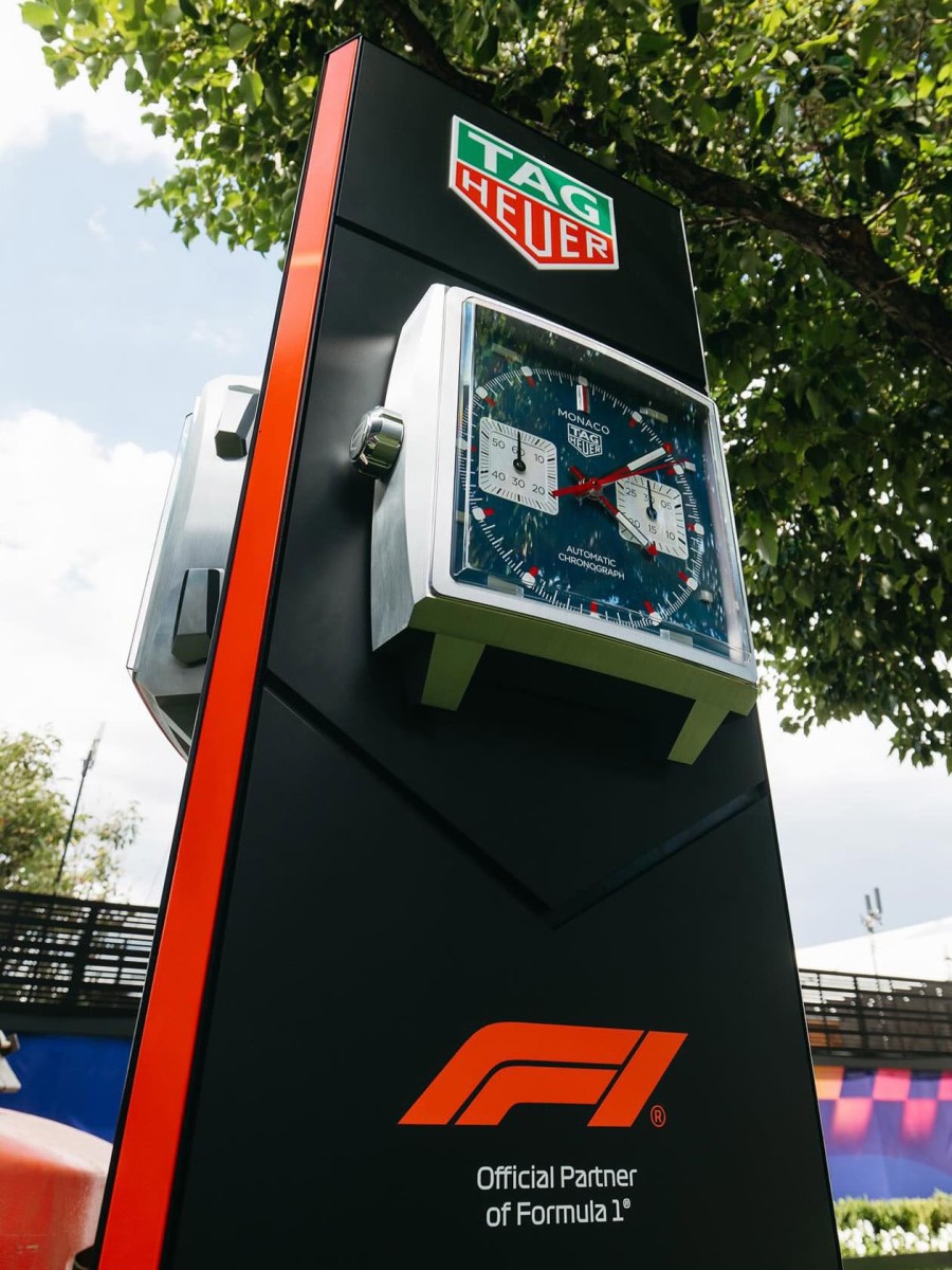 至于在F1赛道场边也会随着泰格豪雅的Logo立牌加上一款大型Monaco系列手表造型时钟,它和Formula 1外观明显有别,因为Monaco採用方形设计,最初于1970年电影《极速狂飆》主角Steve McQueen佩戴而一砲而红,在赛车界以及钟表界都有一定的代表性。若前往现场观赏F1比赛,只要经过Paddock围场、VIP包厢区与F1休息室都能见到这款时钟,不过设于Paddock围场的Monaco时钟直径最大(55cm),其他区域的Monaco时钟直径则稍微小一点(40cm),未来将会是现场值得留念的打卡景点之一。
