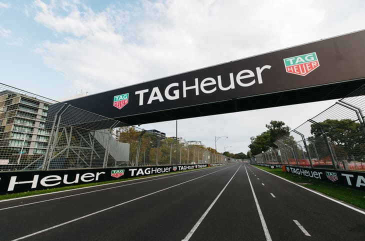 除了这些赛场上或周边的手表风格时钟之外,2025年赛季的F1赛道也将全面「TAG HEUER化」,例如在人行天桥、草地上,还有过弯前的煞车标示上都会出现大大小小的泰格豪雅标志,而在赛事转播的画面中,他们家的Logo也会和现场的即时计时数据一同出现,简单来说过去11年我们收看F1赛事时那种满满的劳力士大平台印象,如今都会被泰格豪雅给覆写过去,强势宣告F1新时代来临。