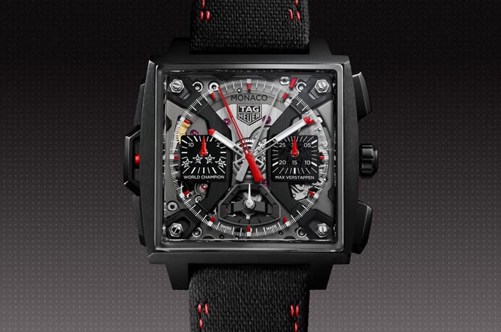 不止如此,TAG HEUER也已经在澳洲大奖赛登场之际,为2024年赛季的车手冠军——甲骨文红牛车队的Max Verstappen打造一款特别订制的Monaco双追针计时码表,让他在参与这场赛事时可以佩戴这款专属于他的表展示一下卫冕冠军的风采和气势,这款表奠基于去年推出的作品,面盘的开面设计露出机芯正面设有双拱形黑色钛金属桥板,形成类似"X"字型相当醒目,而面盘的刻度、计时指针等则涂上红色呼应赛车的热血风格;最重要的是,在手表9点方向的小时计时盘上刻有四颗星星,星星上面分别有他赢下每一座F1车手冠军时的年份,3点方向的分钟计时盘低调地以浮雕形式刻出代表他个人风格的狮子图案,两枚计时盘的下方分别印有Verstappen的姓名和"World Champion"字样,还有个小巧思在于整个面盘只有1点方向设有红色的阿拉伯数字时标,意义再明显不过,就是要强调Verstappen常常排名第1的王者身份。