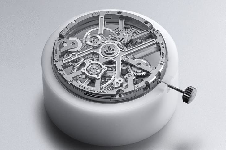 ▲雅典表以钛金属材质取代传统黄铜材质制作机芯,其隐约带有X形外观延续系列特徵,同时亦蕴含许多三角形概念,能巩固整体架构稳定运作。
