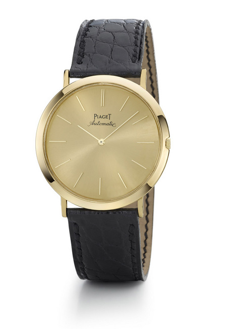 ▲ 伯爵超薄手表,18K黄金,黄金表面搭配白金巴顿指针,搭载伯爵制12P超薄自动上鍊机芯。