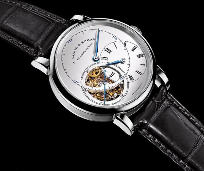 ▲ RICHARD LANGE TOURBILLON 「Pour le Mérite」 18K 白色黄金配蓝钢指针专卖店版
