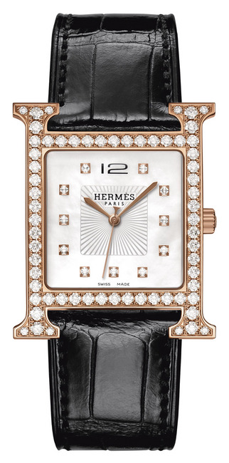 ▲ 爱马仕H-our 玫瑰金钻表短吻鱷鱼皮手表展现出品牌的经典形象与华丽风格。建议售价 NTD,190,700元