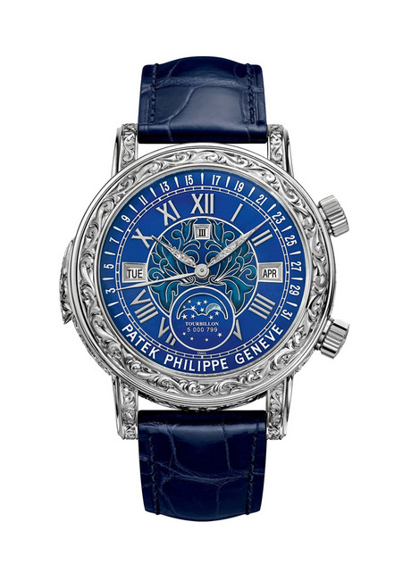 ▲ 拥有超级复杂功能手表的巔峰之作之称的「百达翡丽Ref. 6002G 天文陀飞轮Sky Moon Tourbillon手表」,是百达翡丽最复杂手表Ref.5002的后继之作,全台配额一只。