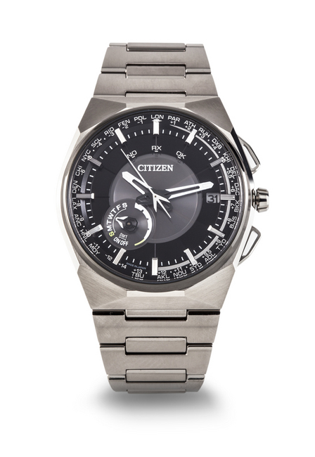 ▲ 为了展现出太空时代的速度感,CITIZEN光动能卫星对时CC2006-53E手表以专利的鈦物料打造出厚度仅12.4mm的纤薄表壳,展现出流畅外型,佩戴起来也是轻鬆舒适。