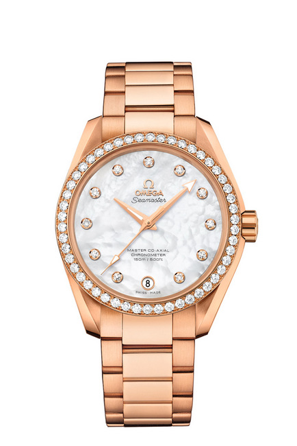 ▲ 海马Aqua Terra大师同轴擒纵手表搭载业界最先进的机械机芯,设计时尚,极富动感,专为热爱运动的人士而设计。在这款奢华手表的珍珠母贝面盘上,饰有11颗18K金镶座钻石时标。此38.5毫米18K玫瑰金女用手表配备镶钻表圈,搭配18K玫瑰金表链。手表搭载革新的欧米茄8501大师同轴擒纵机芯,能够抵抗高达15,000高斯以上的磁力。