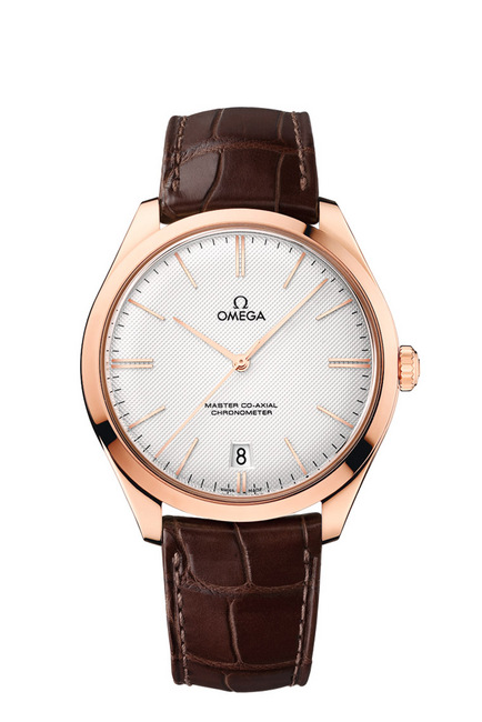 ▲ 欧米茄Trésor系列于1949年面世,搭载传奇的30毫米机芯,金质表壳纤薄经典,别具一格。逾半世纪后,碟飞系列Trésor手表经过升级改良,搭载了品牌前所未有的顶尖机械机芯。这款手表配备饰有圆弧形经典「巴黎钉纹」(Clous de Paris)图案的蛋白石银色面盘,6点鐘位置设有日期视窗。40毫米18K黄金表壳搭配棕色皮表带及18K黄金表扣。碟飞系列Trésor手表搭载独特的欧米茄8511大师同轴擒纵手动上链抗磁机芯。水晶镜面 抗磨损蓝宝石水晶镜面,内部经防反光处理